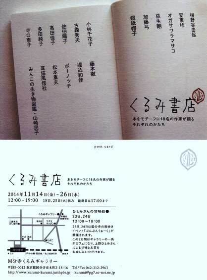 2014.11.14fri〜26wed くるみ書店@くるみギャラリー にて展示します。